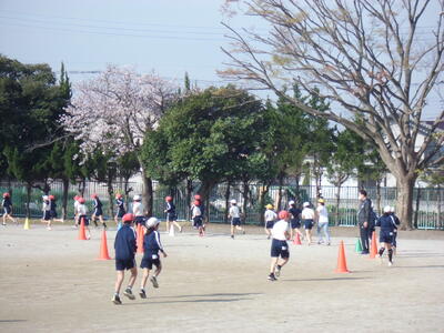 昨日の卒業式を終え6年生が小渕小を巣立ち、今日は1~5年生での学校生活です。朝は、登校後の一(いち)運動の時間です。子供たちが校庭に出て、元気に運動をしています。