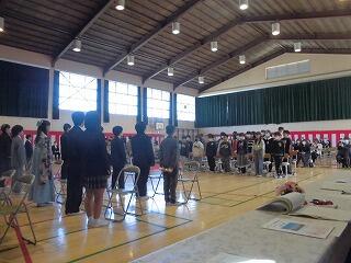 第44回卒業証書授与式が挙行されました。卒業式のメイン、卒業証書授与が始まって間もなく、大きな揺れがありました(震度4の地震)が、小渕っ子は取り乱すことなく、冷静に身の安全を確保する行動がとれました。これまでの学びが生きた瞬間でした。その後式は再開され、卒業生47名が多くの方の祝福のもと、小渕小学校を巣立っていきました。歌も言葉も心のこもった、素晴らしいものでした。在校生を代表して出席した5年生も大変立派でした。卒業生のみなさん、これまでの学びをもとに、中学校生活をますます充実したものにしてください。みなさんの活躍を職員一同期待しています。保護者の皆様、ご来賓の皆様、ご参加くださった皆様、ありがとうございました。