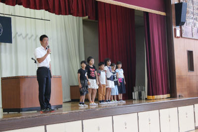 今日の児童朝会は「本いっぱい集会」でした。読書週間に合わせ、本の楽しさや図書室の秘密など、図書委員さんたちが楽しく、わかりやすく紹介してくれました。今年度、図書室の本を多く借りた人ベストテンの発表もありました。
