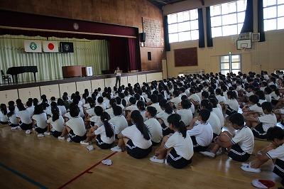 前に並んだ選手達には、在校生の熱い視線が注がれていました。誇り高い小渕っ子の姿に、感動を覚えました。練習に参加したみんな、よく努力したと思います。「努力は裏切らない」。自分で自分をほめて下さい。そして、選手の皆さん、全力を出し切ってきて下さい。