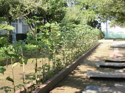 学校の植物や野菜も夏の日差しをあびて成長しています。