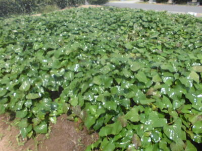学校のサツマイモ畑のサツマイモが順調に育っています。暑い夏の間も、校長先生や他の先生が水やりをして、イモの生育を見守っています。栽培ボランティアの方も、随時、畑の世話をして下さっています。