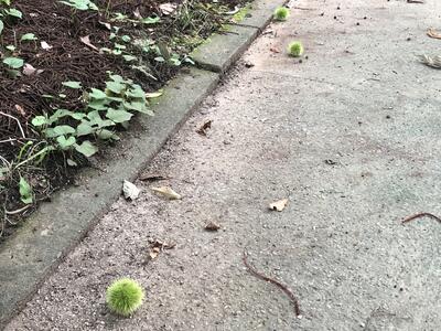 先日の小渕小ブログでもお伝えしましたが、学校敷地内のクリの木から、実が落ちてきています。