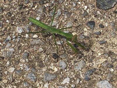 ( ↓ セミの抜け殻を見つけました。頭上の木の上で鳴いているセミのものでしょうか。)
