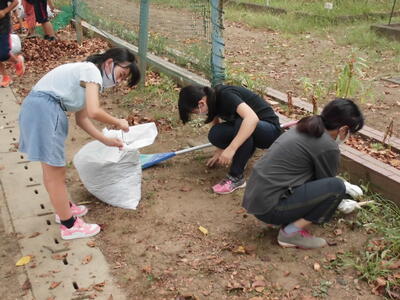 本日はお花ボランティアの方の活動日でした。栽培委員会といっしょに環境整備をしていただきました。