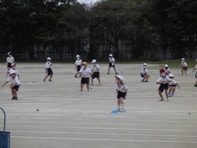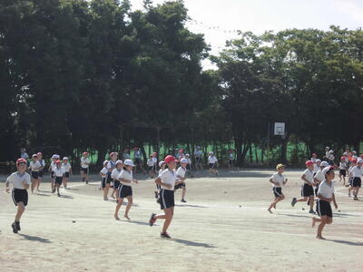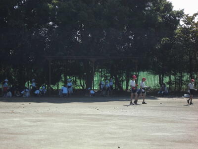 10:35   プログラム9番、3・4年生による、ボール運びリレーが始まっています。