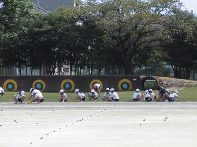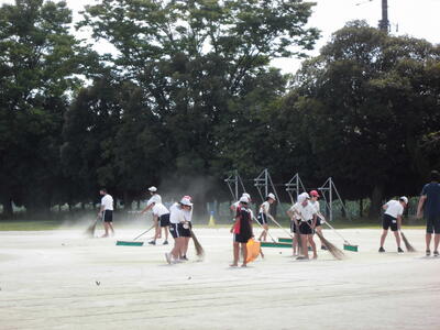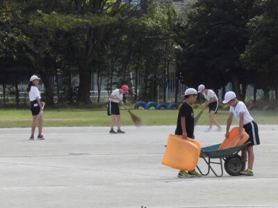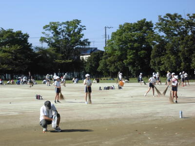 参加の皆様、本日は来校いただき、また暑い中での作業、誠にありがとうございました。9月下旬には運動会も予定され、その練習も始まります。きれいになった校庭を子供たちが元気に駆けていくことと思います。