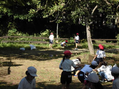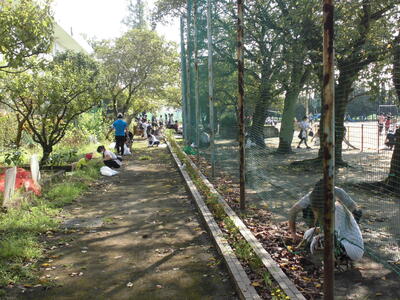 ( ↑ 栽培委員会。校庭の落ち葉掃きや環境整備をおこないました。)