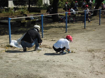 ( ↓ 子供たちも保護者の方とともに、一生懸命作業しています。)
