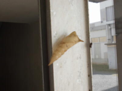 ↓ 別の場所には、チョウのサナギの抜け殻がありました。