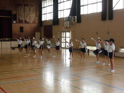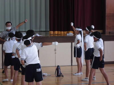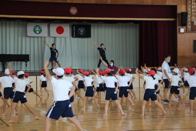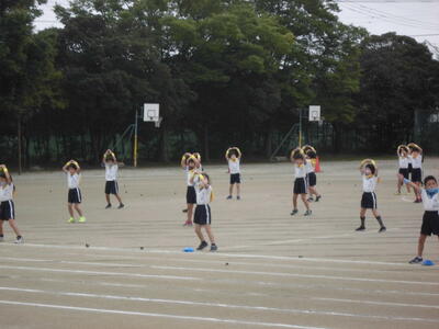 中学年(3・4年生)の合同練習です。ダンスの動きを合わせています。