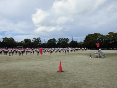3連休明けの学校です。本日は、朝まで降っていた雨もあがり校庭も乾いたので、全校での運動会練習を朝から1時間目にかっけておこないました。予報では、明日・あさっての天気がよくないので、運動会前に全校で校庭で練習できるのは、今日が最後かもしれないと、みな集中して練習に取り組みました。
