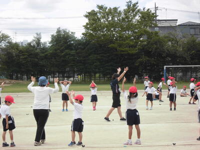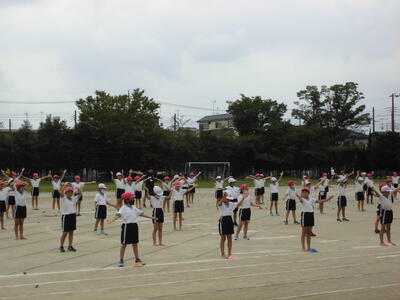 最後に全員で整理体操をして終わりました。さわやかな汗が光りました。