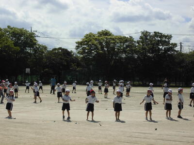 今日の朝は、二学期最初のさわやかタイム、朝の運動の時間です。
