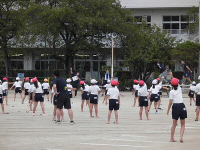 運動会にむけて、3・4年生の合同練習です。ダンスの前後の動きなどを確認しています。
