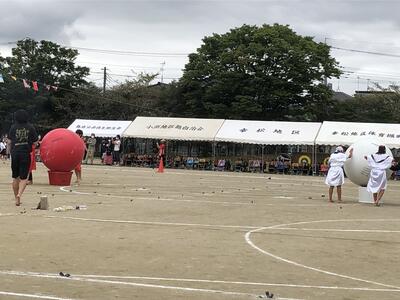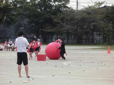 10:05 応援合戦に続いて、全校児童による大玉送りです。