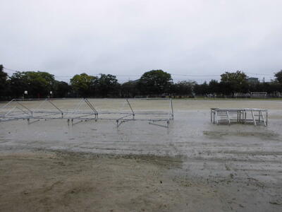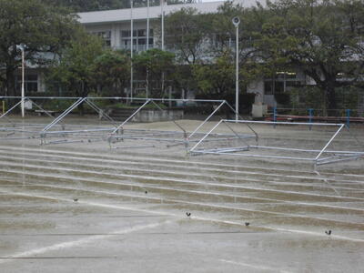 6:00 本日の運動会実施が決定しました。校庭では準備が進んでいます。