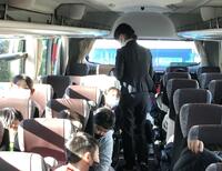 職業体験が終了しました。バスに乗車して、学校へ向かいます。