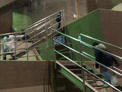 地下に来ました。「地下神殿」ともいわれる調圧水槽の迫力に、驚きの声があがっています。