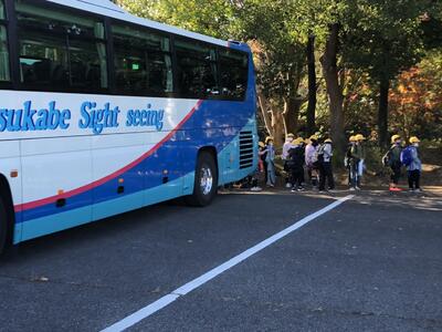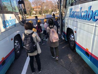 本日、4年生は社会科見学です。バスで、社会科の授業で学習した春日部市の防災設備や、埼玉県の伝統工芸などについて学びにいきます。