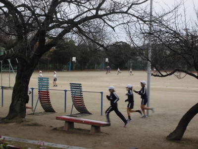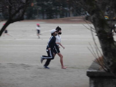 ( ↓ 寒い時期になりましたが、今日の朝もいつもと同じように、登校した子供たちが自主的に外へ出て、元気に校庭を走っています。)