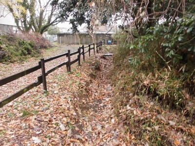 ( ↓ 森を囲む水路。先日、おやじの会の方に整備していただいた後、水を張ってみました。)