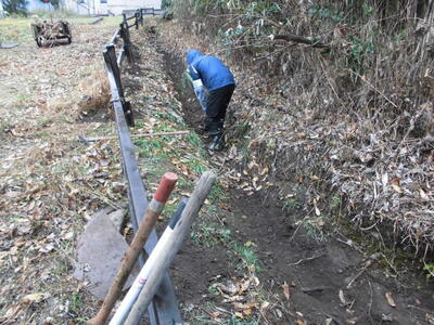 本日は、おやじの会の会長さんが、水路の試し堀りをおこなってくださいました。寒い中でしたが、クワやスコップで、水路の水が循環するよう掘り、今後の活動の見通しを立てました。寒い中、小雨も降る中でしたが、ありがとうございました。