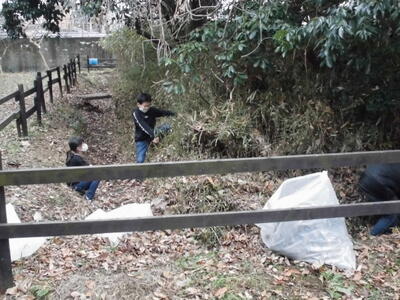 今日は委員会活動の日でした。栽培委員会が、学校の自然の森(通称「トトロの森」)周辺の水路の清掃をおこないました。