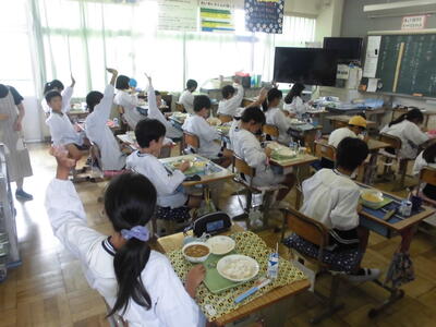 今日から平常の日課です。給食を食べて、午後の授業も頑張ります。