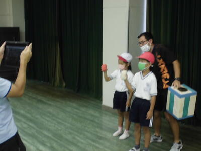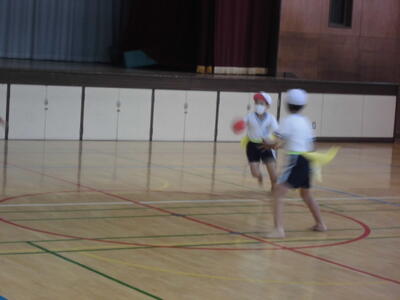 今日の朝は、児童集会。代表委員が中心となって、用意したレクリエーションをおこないました。