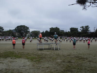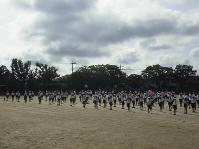 今日の朝は、二学期最初の「さわやかタイム」(全校で運動する時間)です。