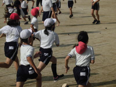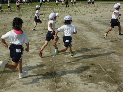 ( ↓ それぞれの学年が、頑張って駆けています。)