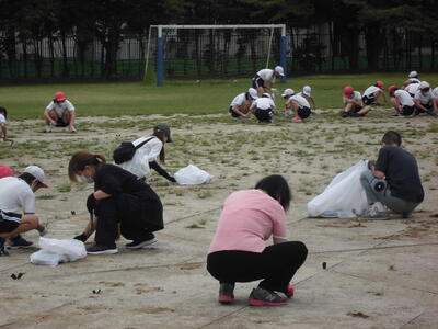 今愛校活動愛校活動。子供たちが、校庭の除草作業に取り組みました。