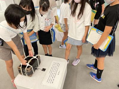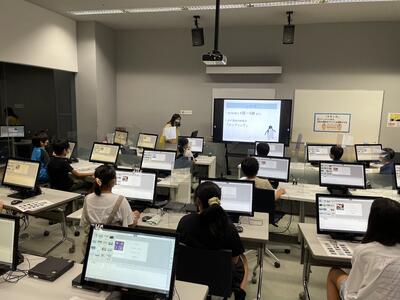 (クラスに分かれて映像ミュージアムの見学が始まりました。)