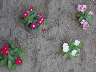 玄関前の花壇は、校長先生が秋の花が植えました。