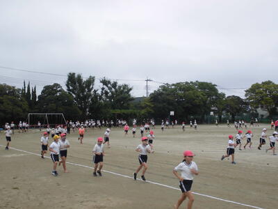 ( ↓ 今日の朝は、さわやかタイム。全校で運動する時間です。今日はインターバル走に取り組みました。)