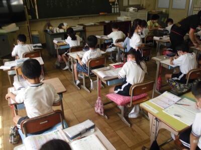 本校でも、4~6年生の各教室で、国語と算数の練習問題に取り組みました。