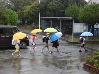 雨が降ったりやんだりの一日となりましたが、学校では子供たちが元気に活動しています。