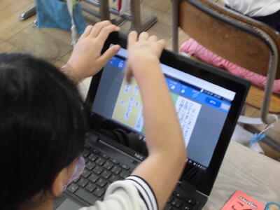 タブレットを使って、問題に取り組みます。先生の指示で、みないっせいにタブレットを起動させました。