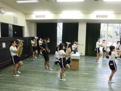 今日の練習は終わりました。雨天で校庭は使えませんでしたが、工夫して練習をおこなうことができました。今度、校庭で実際に合わせて見るのが楽しみです。