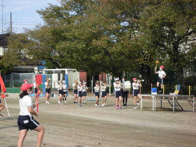 今日の朝は、業前の時間に運動会に向けての全体練習がありました。