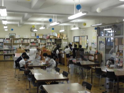 ( 視聴覚室で、間隔をじゅうぶんとっておこなっています。)