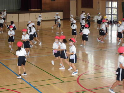 各学年で、運動会に向けての取組が進んでいます。5時間目は高学年が、5・6年生合同で「表現」の演技の練習をおこないました。