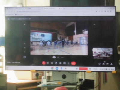 ( ↓ 感染症対策のため、6年生と発表学年以外は入れ替わります。教室にいる学年は、体育館とリモートで結んで、モニターで体育館の様子を診ています。)