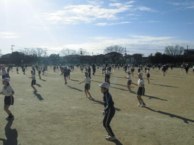 ( ↓ 走り終えた6年生も加わって走る姿が見られます。)