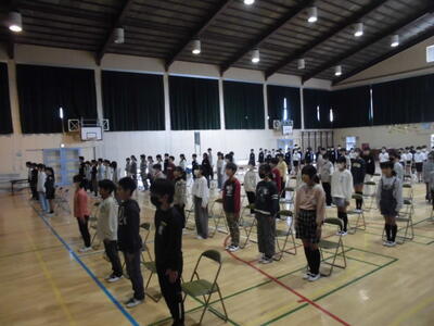 今日で今年度の三学期が終わります。体育館では、今年度の修了式をおこないました。