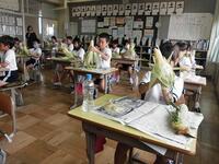 今日は、1時間目に3年生がトウモロコシの皮むきをやってくれました。トウモロコシは今日の給食の献立の一つです。全校児童分を3年生全員でむきました。手洗いと消毒を丁寧に行い、粒一つ一つを傷つけないよう優しくむきました。給食で食べたとうもろこしは一粒一粒がシャキシャキの食感でとても甘く、デザートを食べているようでした。3年生の皆さん、ありがとうございました。