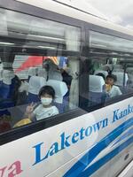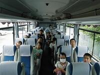 演劇を見ることも楽しみですが、バスに乗って移動するのも楽しみの一つです。出発前の車内の様子を撮りました。酔わないように、学校から祈っています。