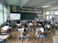 なお、本日は体育館で表彰朝会を行う予定でしたが朝から気温が高く、熱中症予防のため、オンライン配信で行いました。また、予定していた3年生のスーパーマーケット見学は9月以降に延期しました。朝食を抜いたり、睡眠時間が不足したりすると熱中症のリスクが高まるそうです。規則正しい生活を送るようにしましょう。登下校時の日傘も対策の1つです。