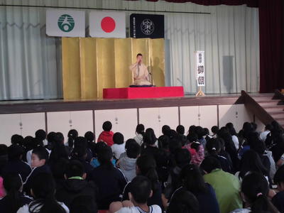 文化庁 文化芸術による子ども育成総合事業公演「わんぱく子ども寄席」のワークショップが行われました。